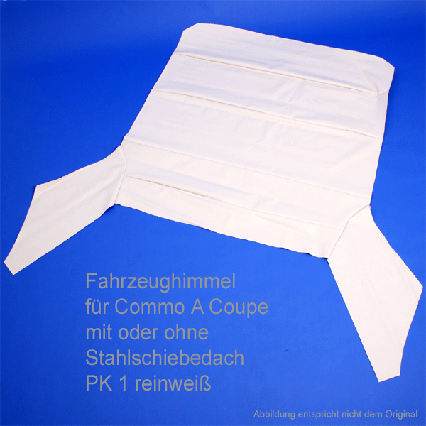 Der Himmel wird einbaufertig mit den Einhängern für die Spannstäbe, und ca. 5cm Überstand ringsherum sowie einer Einbauanleitung geliefert. Bei diesem Himmel ist die hintere Säule wie beim Original angenäht.